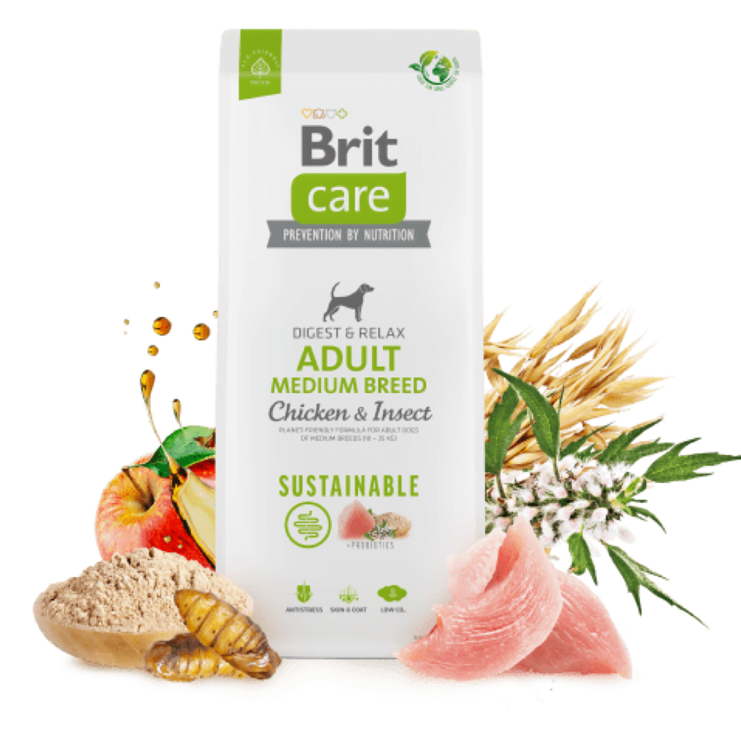 Orta Irk (10 – 25 kg) Yetişkin Köpekler için Tavuk ve Böcekli Tam Köpek Maması
