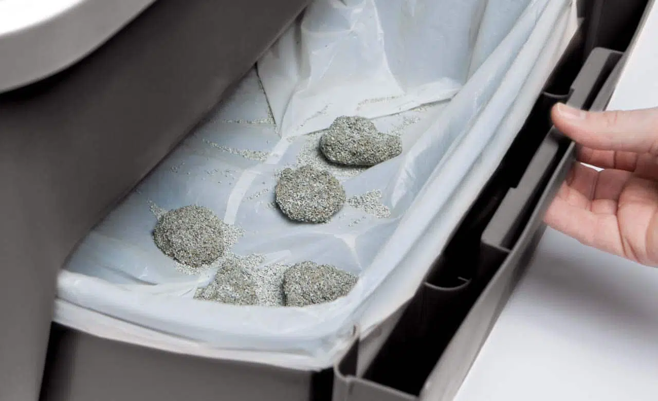 Kolu çektiğinizde kum elekten geçirilir ve atıklar alttaki çekmeceye dökülür. Kolu bıraktığınızda temiz kum tekrar yerine yerleşir ve kullanıma hazır hale gelir.