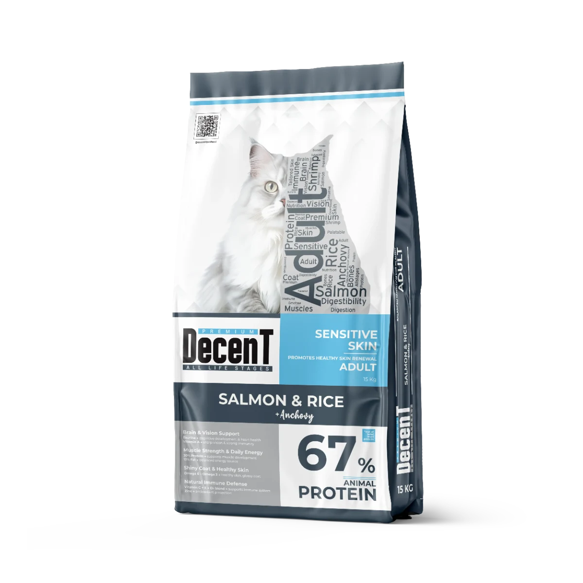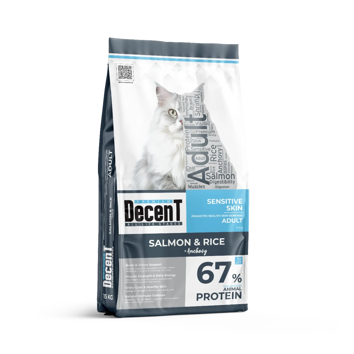 Decent Somonlu Yetişkin Kedi Maması 15 kg – Deri Sağlığı ve Lezzet Odaklı Tam Beslenme