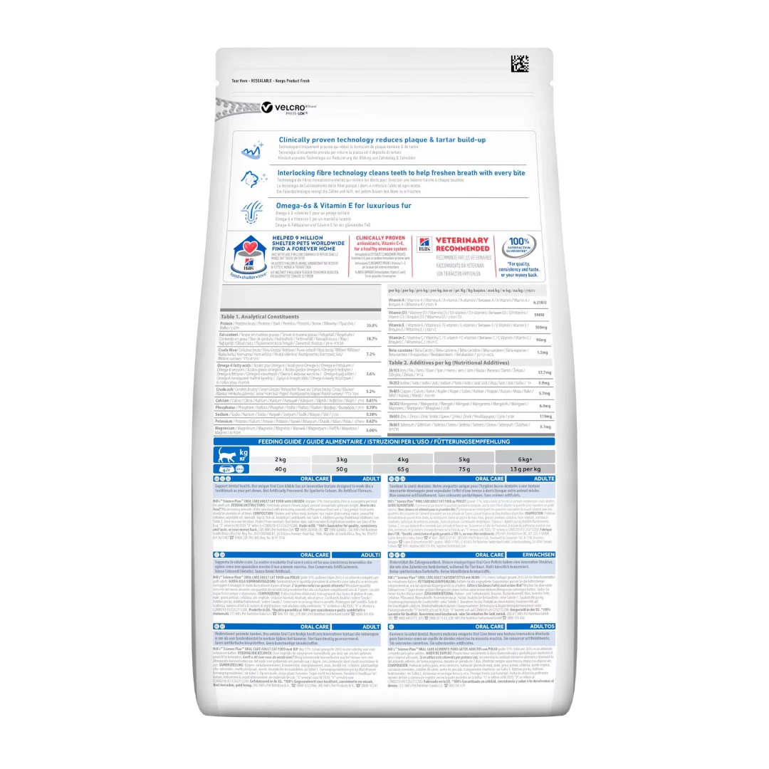 HILL’S SCIENCE PLAN Oral Care kuru kedi maması, plak ve tartar oluşumunu azalttığı klinik olarak kanıtlanmış teknoloji içerir. Plak ve tartar oluşumunu azalttığı klinik olarak kanıtlanmış teknoloji Tek yönlü lif teknolojisi, her ısırıkta nefesi ferahlatır ve dişleri temizler Parlak tüyler için Omega 6 yağ asitleri ve E Vitamini