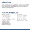 MALZEMELER: İÇİNDEKİLER: Mısır, kırık pirinç (13%), buğday, soya unu, ton balığı unu (6%), hayvansal yağ, tavuk ve hindi unu, hidrolize protein, mısır gluteni unu, bezelye proteini, keten tohumu, bitkisel yağ, mineraller.