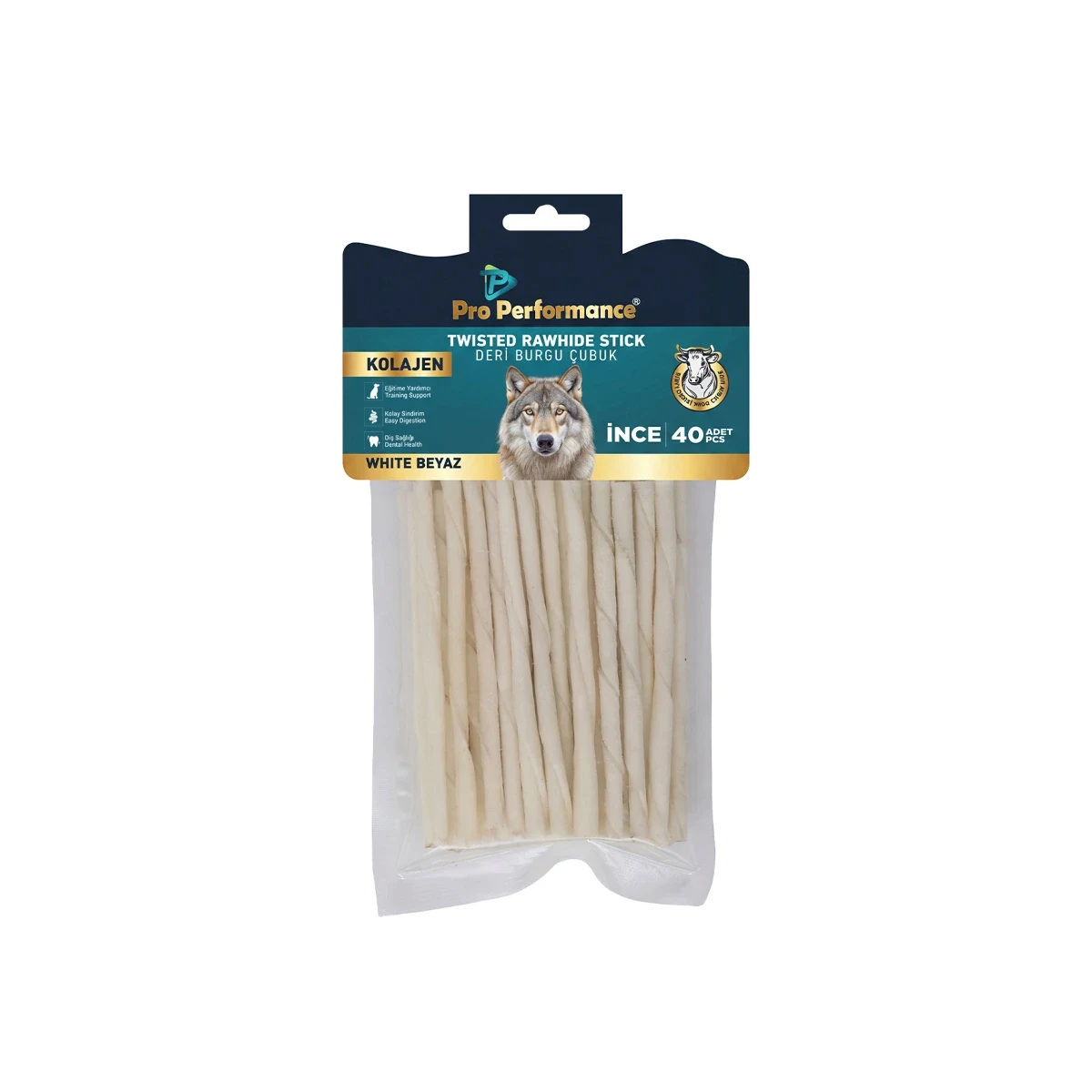 Pro Performance Deri Burgu Çubuk Beyaz İnce, köpekler için özel olarak tasarlanmış, %100 doğal deri hammaddesiyle üretilmiş bir ödül ve eğitim çubuğudur. 40’lı ekonomik paketi ile uzun süreli kullanım imkânı sunan bu ürün; eğitime destek, sindirim kolaylığı, doğal kolajen içeriği ve diş sağlığına katkısıyla öne çıkmaktadır.