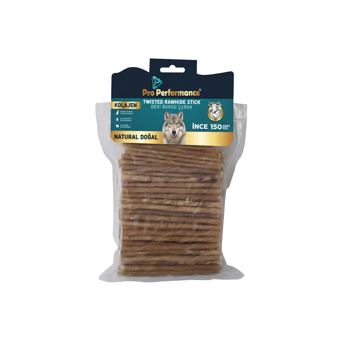 Pro Performance Deri Burgu Çubuk Naturel İnce, köpekler için özenle hazırlanmış doğal bir ödül ve eğitim yardımcısıdır. 150 adetlik büyük paket seçeneğiyle hem ekonomik hem de uzun süreli kullanım imkânı sunar. Naturel yapısıyla katkı maddelerinden uzak, saf ve güvenilir bir ürün arayan evcil hayvan sahiplerinin tercihi olmaktadır.