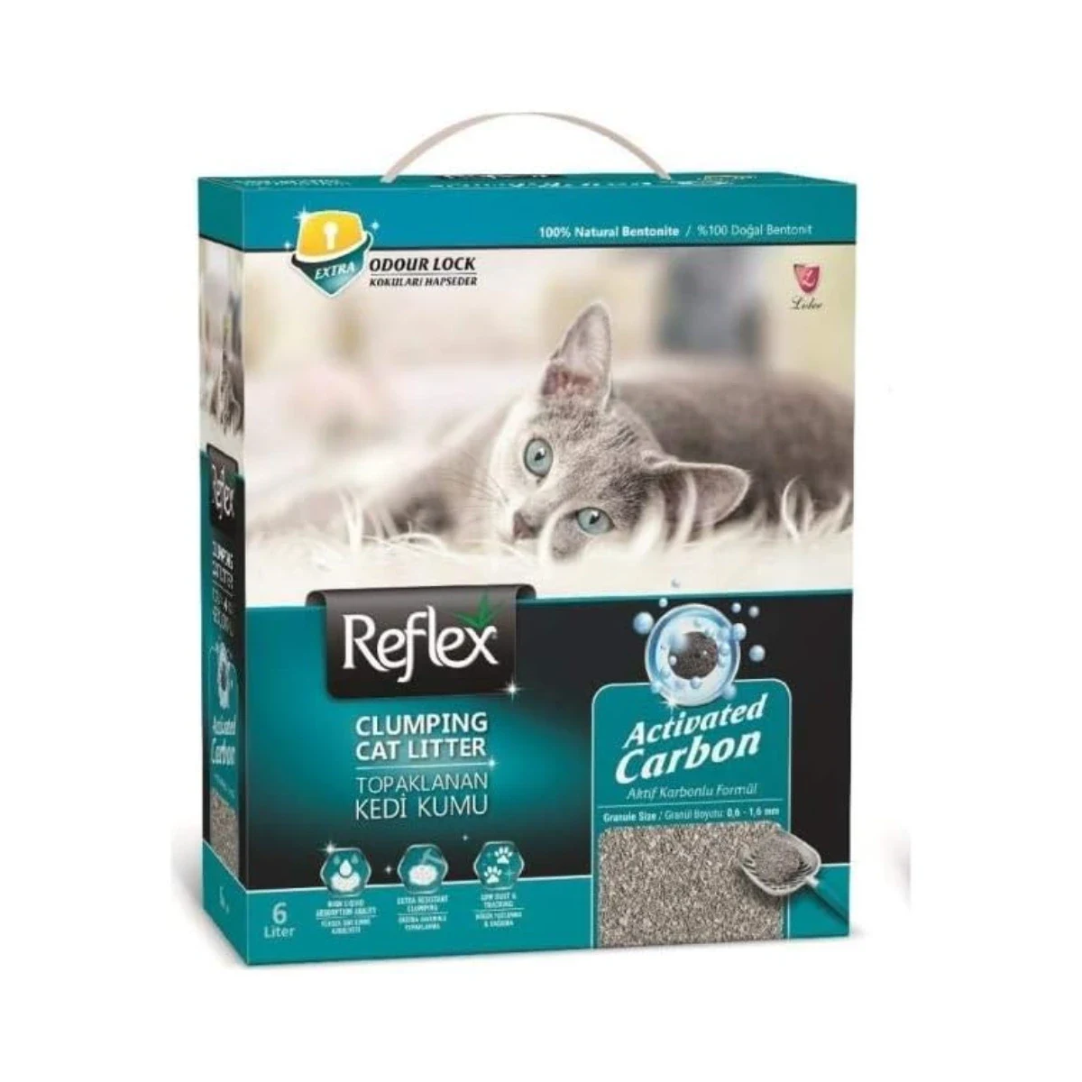 Reflex Activated Carbon Kedi Kumu, kedilerin yaşam alanlarını temiz ve koku özgür tutmak isteyen evcil hayvan sahipleri için geliştirilmiş ileri formüllü bir kedi kumusudur. Ürün formülasyonuna doğrudan enjekte edilen doğal aktif karbon teknolojisi sayesinde, kedi idrar ve dışkısından kaynaklanan amonyağı maksimum seviyede bloke eder; ortamdaki istenmeyen kötü kokuların azalmasına güçlü biçimde katkı sağlar.