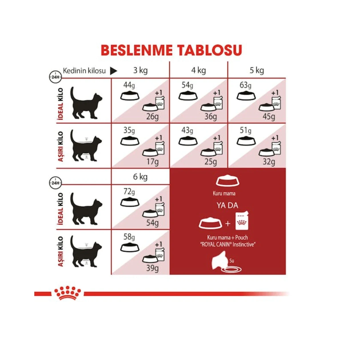Aşağıdaki tablo, kedinizin kilosuna ve vücut kondisyonuna göre önerilen günlük mama miktarlarını göstermektedir. Ölçek değerleri, ürünle birlikte gelen standart ölçeğe göre belirlenmiştir.