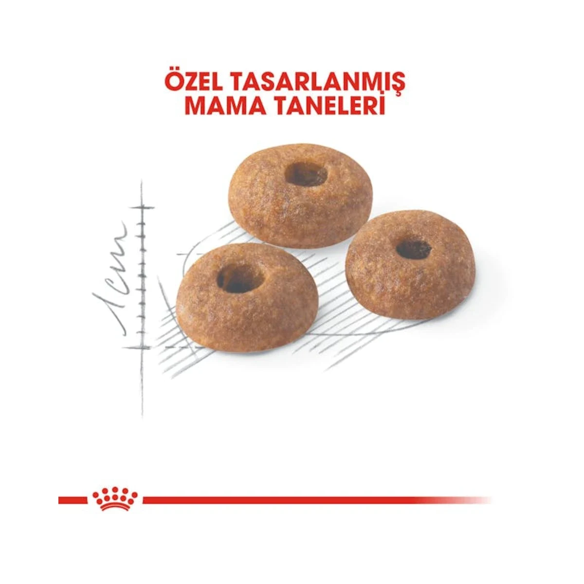 Benzersiz halka biçimli mama tanesi tasarımı, kedinizi mamayı daha yavaş tüketmeye ve iyice çiğnemeye teşvik eder. Mama yedikten sonra hareket etmeyi kesmeyen aktif kediler için bu özellik özellikle büyük önem taşır. Özel tasarlanmış mama tanesi parçalanarak kolayca sindirilir ve aktif bir kedinin sindirim sistemini rahatlatır.
