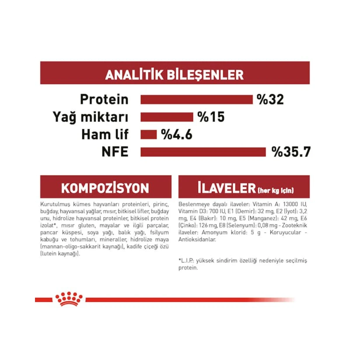 Yetişkinlik döneminin tüm beslenme gerekliliklerini karşılamak için kediler yüksek kalitede besine ihtiyaç duyar. Royal Canin Fit 32, yetişkin kedinizin sağlığını desteklemek ve korumak için doğru düzeyde yararlı besinler içeren optimal bir besin profiline sahiptir. Özel antioksidan kompleksi ile kedinizin günlük sağlığını içten destekler.