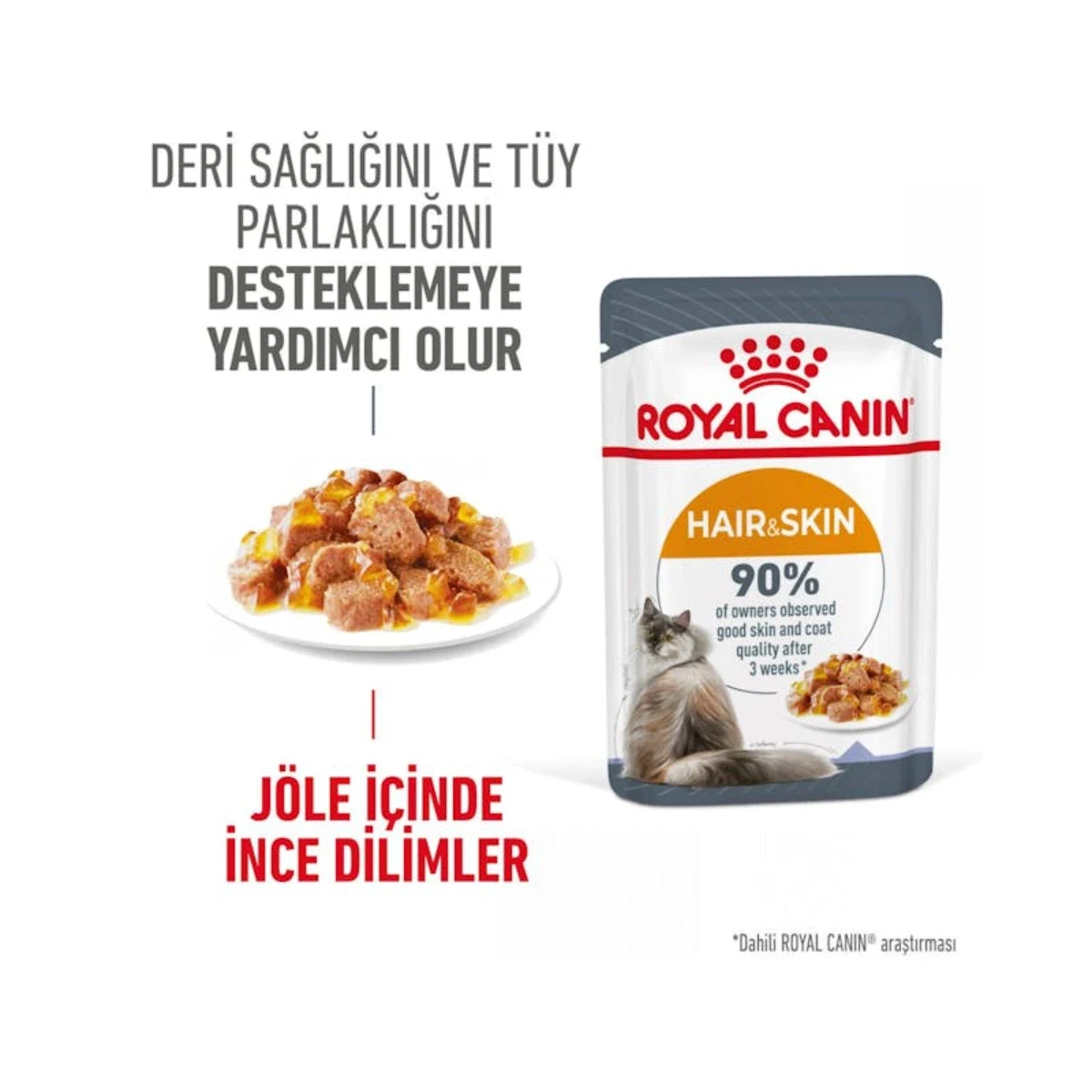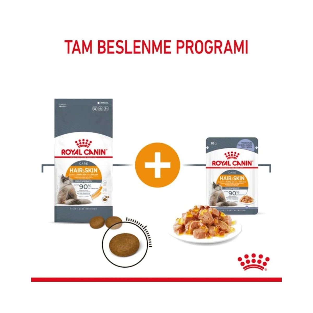 - Royal Canin Hair & Skin Care kuru mamasının mükemmel tamamlayıcısıdır; ikisini birlikte kullanmak kedinize çeşitlilik ve eksiksiz beslenme imkânı sunar.