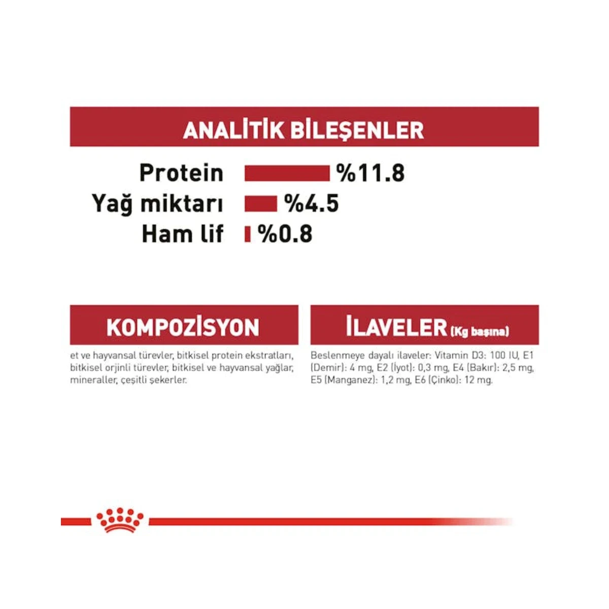 Ürünü serin ve kuru bir yerde saklayınız. Parti kodu, tescil numarası ve son kullanma tarihi için ambalaj üzerini inceleyiniz. Ürün, Royal Canin Turkey Evcil Hayvan Ürünleri Ticaret Limited Şirketi tarafından ithal edilmektedir.