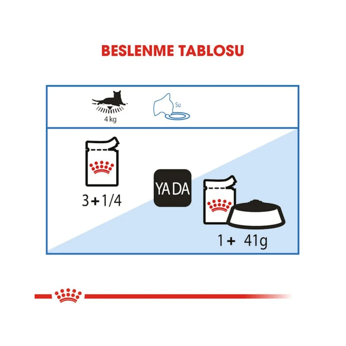 - Kuru mama ile uyumlu kullanım: Royal Canin Light Weight Care kuru mama formülüyle birlikte kullanıldığında tam ve dengeli bir beslenme programı oluşturur; kedilerin sevdiği çeşitliliği sağlar.