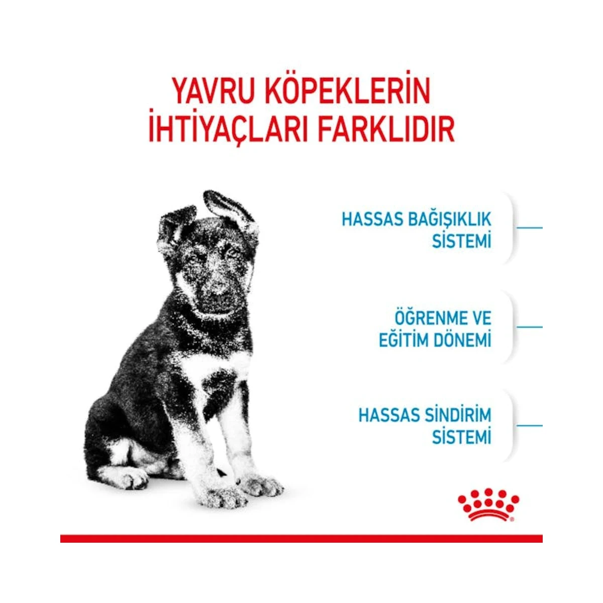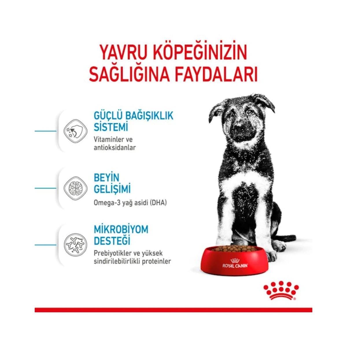 - Büyük Irk Yavrularına Özel Formül: 26-44 kg yetişkin ağırlığına ulaşacak, 2-15 aylık yavru köpeklerin uzun büyüme dönemine uygun optimal enerji içeriğiyle özel olarak tasarlanmıştır.