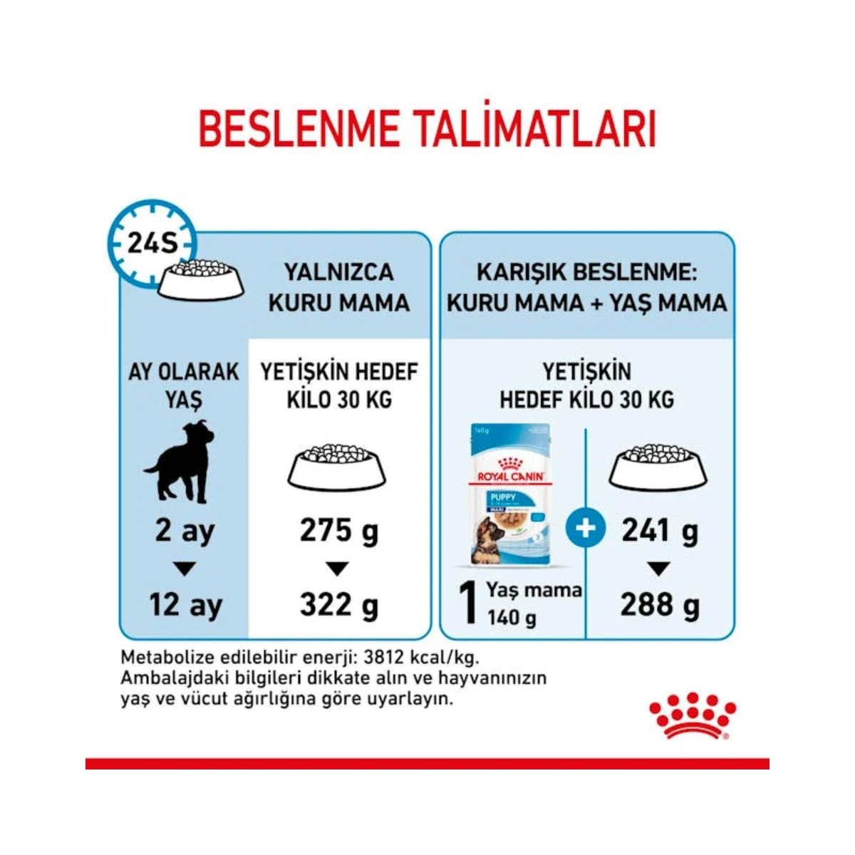 - Metabolize edilebilir enerji: 3.812 kcal/kg