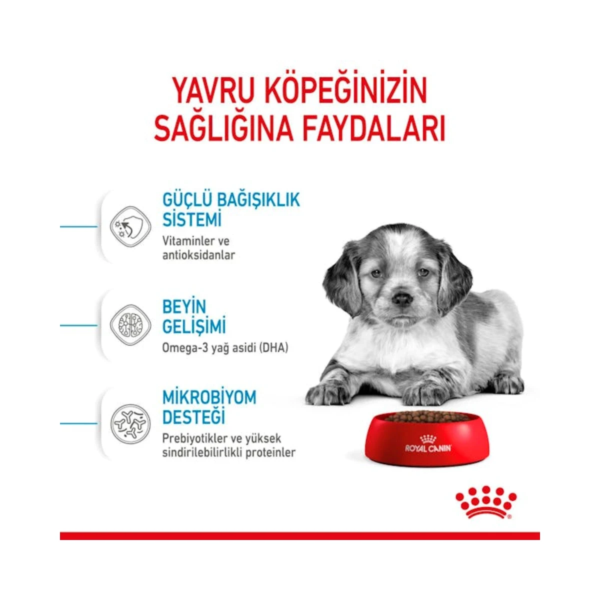 Royal Canin Medium Puppy, yetişkin dönemde 11-25 kg ağırlığa ulaşması beklenen orta boy yavru köpekler için özel olarak geliştirilmiş tam bir mamadır. 2 ila 12 aylık yavru köpeklerin hızlı büyüme dönemindeki beslenme ihtiyaçlarını bilimsel temelde karşılamak amacıyla formüle edilmiştir.