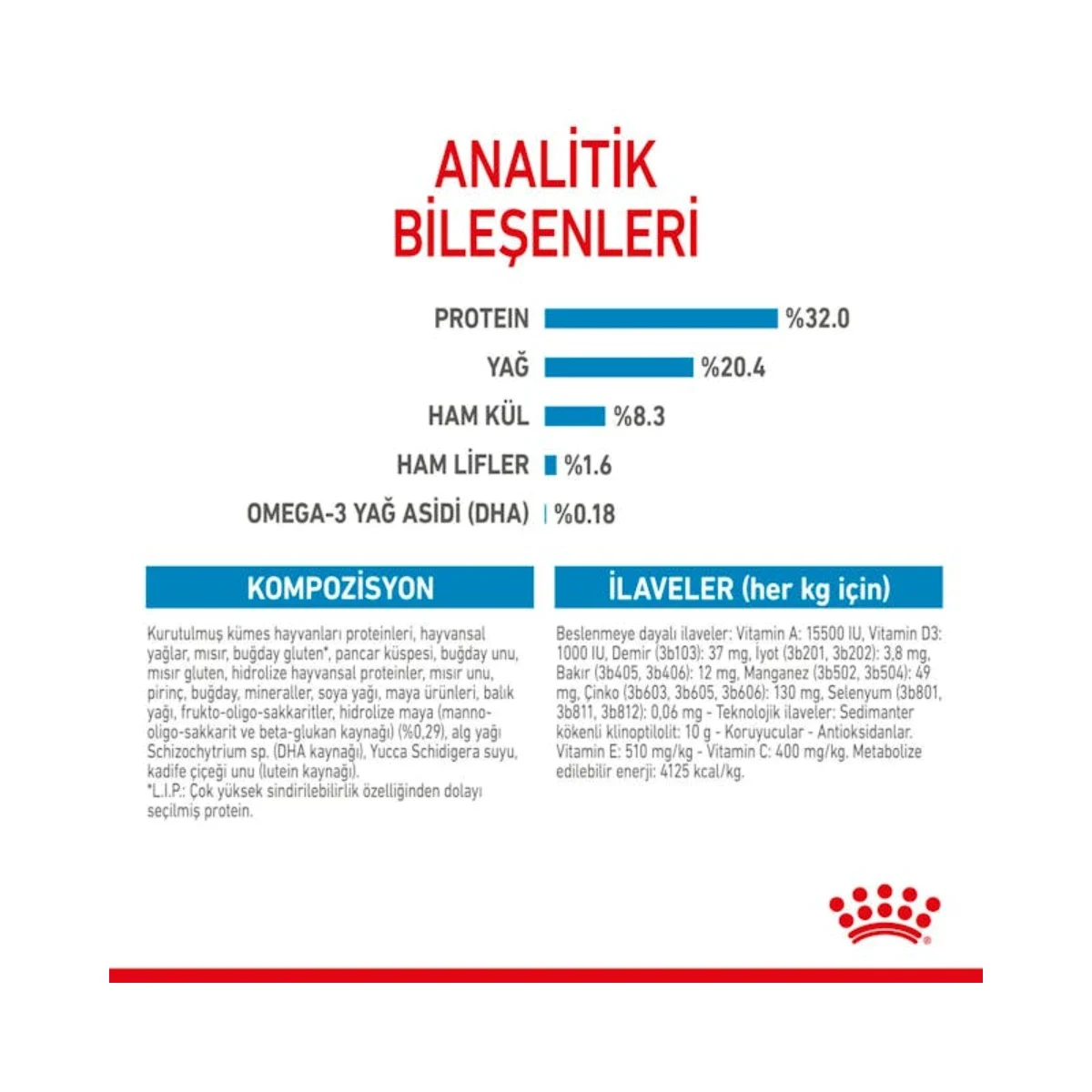 - Sağlıklı Sindirim: Prebiyotik (FOS, MOS) kombinasyonu ve yüksek sindirilebilirliğe sahip proteinler ile bağırsak mikrobiyotasının sağlıklı dengesini korur.