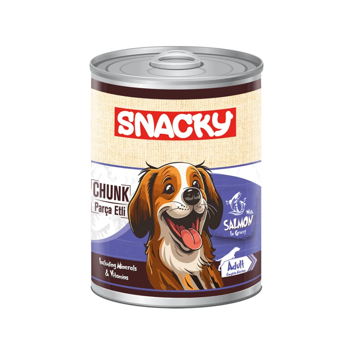 Snacky Parça Somonlu Köpek Yaş Mama, yetişkin köpeklerin günlük besin ihtiyaçlarını eksiksiz karşılamak için özel olarak formüle edilmiş, az tahıllı bir yaş mamadır. Soslu sos içinde sunulan gerçek parça somon eti ile köpeğinizin damak zevkine hitap ederken, dengeli besin içeriğiyle sağlıklı bir yaşam sürmesine destek olur.