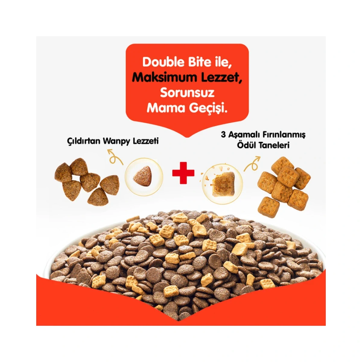 - Double Bite Teknolojisi: Düşük ısıda fırınlanmış iki farklı mama tanesi bir arada sunularak besin değerlerinin korunması ve sorunsuz tüketim sağlanır.